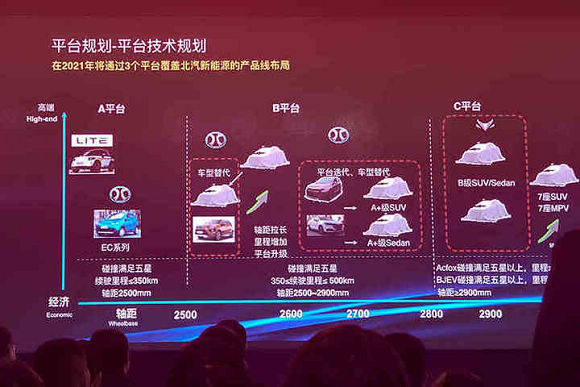 长期战略:在2020-2023年,发展成为行业及供应商,为新能源汽车全行业提供完整的三电系统解决方案。供词电池业务方面,将根据BJEV平台化战略,从BE21平台着手,逐步完成BJ11、BJ21平台电池Pack与整车的平台匹配。