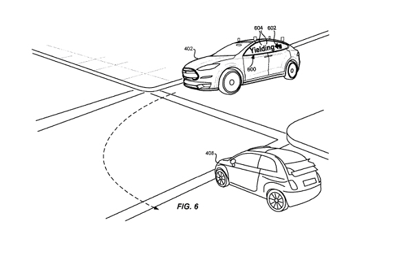该专利表示:“驾驶员和行人习惯于以特定方式进行互动,从车辆中去除驾驶员可能会导致不确定性和误解”。该专利文件描述了该系统可实现自动驾驶车辆与周围行人进行通信的一些具体方式。如,当自动驾驶车辆接近行人时,该车显示预订车辆乘客的名字;此外还有自动驾驶汽车可以通知行人,在汽车面前通行是安全的。该专利还描述了一辆自动驾驶汽车告知另一辆车其正在避让,并且通知骑车者可以安全通过。