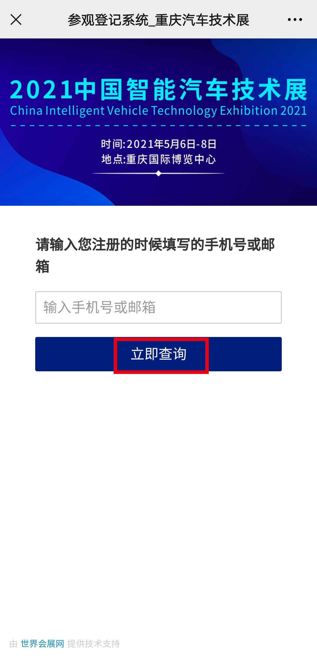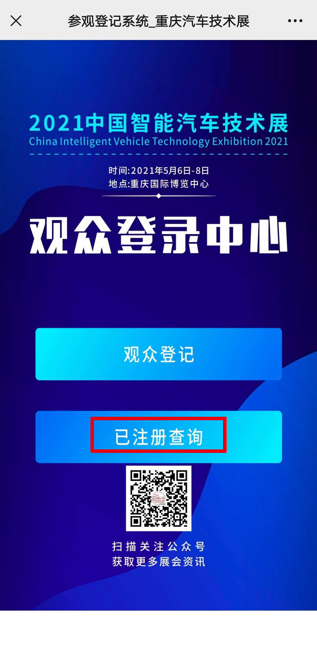 如您已预登记过,可点击“已注册查询”→“输入手机号或邮箱”,即可查询参观二维码。