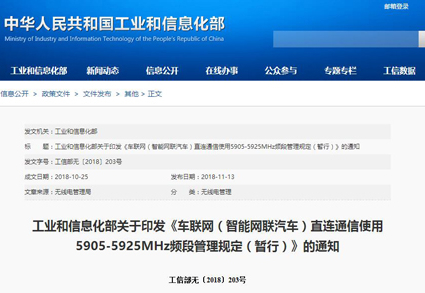 工信部发布车联网无线电频率规划 助力制造强国和网络