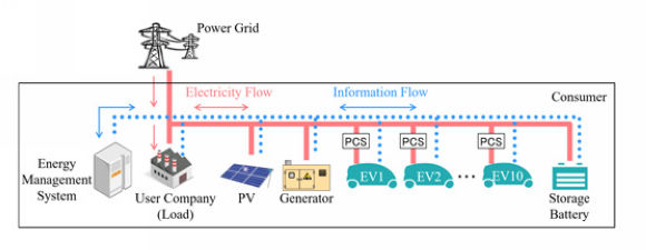 三菱电机的新型解决方案采用了多向功率调节系统(PCS),通过计算最低的电力成本,协调用户停放在公司的电动汽车使用PV、其他发电系统充电/放电,以及预测电力需求和PV发电量,以减少或转移高峰时段的电网电力的使用。嵌入专有模型的数学程序将基于电网电力、电力单价、电力需求、电动汽车车队在接受功率容量、供需平衡以及电动汽车和现场蓄电池最大和最小充电/放电水平的限制下预期会使用的电量计算现场发电和电动汽车充电/放电的优化计划。