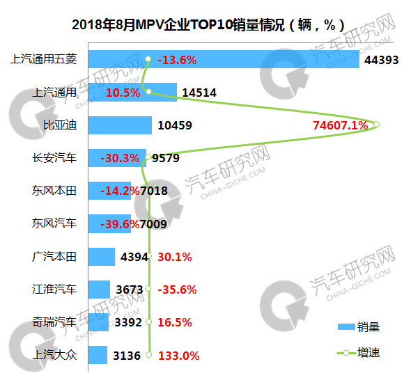 2018年8月MPV企业:比亚迪销量增势不减 增幅超70000%