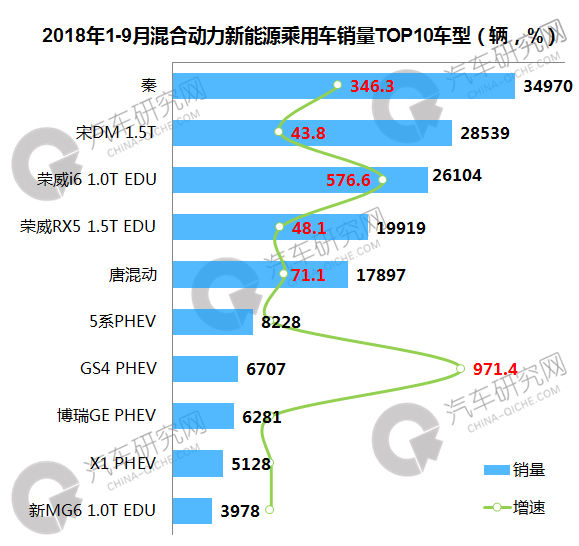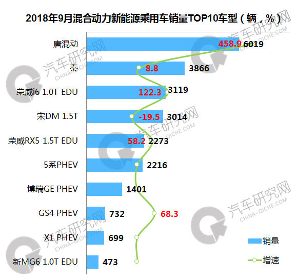 2018年9月新能源混合动力乘用车车型:比亚迪唐增速突
