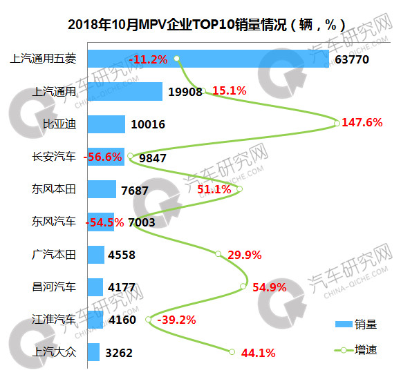 2018年10月MPV企业:比亚迪销量增幅达到147.6%