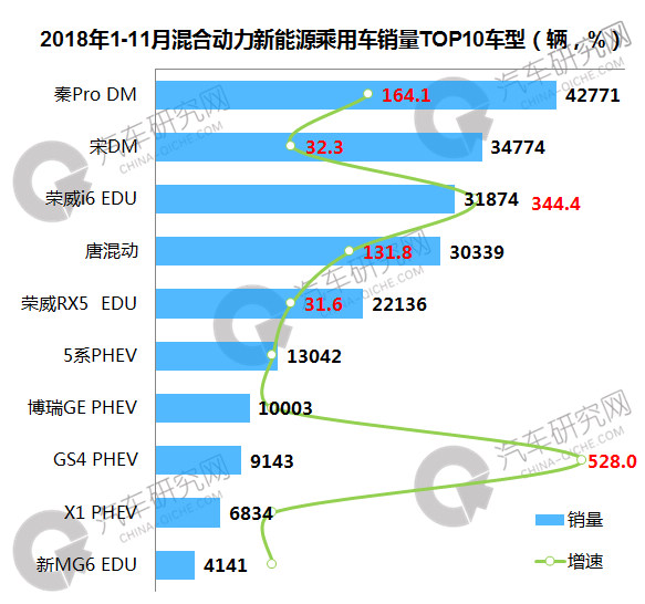 2018年比亚迪混动车型包揽三甲 秦Pro逼近5万辆大关