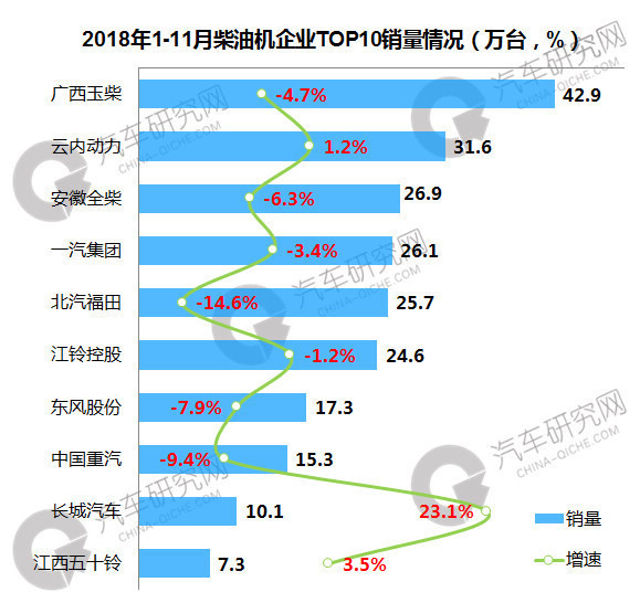 2018年11月柴油机企业:长城汽车增幅达78.5%