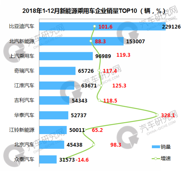 2018年新能源乘用车全年销量突破100万辆 比亚迪荣获冠