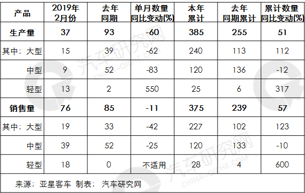 附件:亚星客车关于2019年2月份产销情况的自愿性信息披露公告