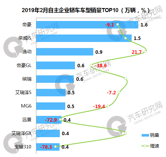 2月吉利帝豪 荣威i5领衔自主企业轿车