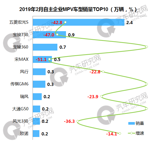 2019年2月自主MPV五菱宏光遥遥领先 多数企业销量均不
