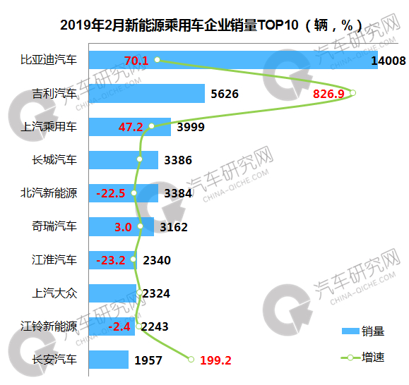 2月新能源乘用车企业比亚迪高居榜首 吉利实现大幅度增