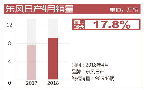 东风日产4月终端销量超9万辆 同比增长17.8%