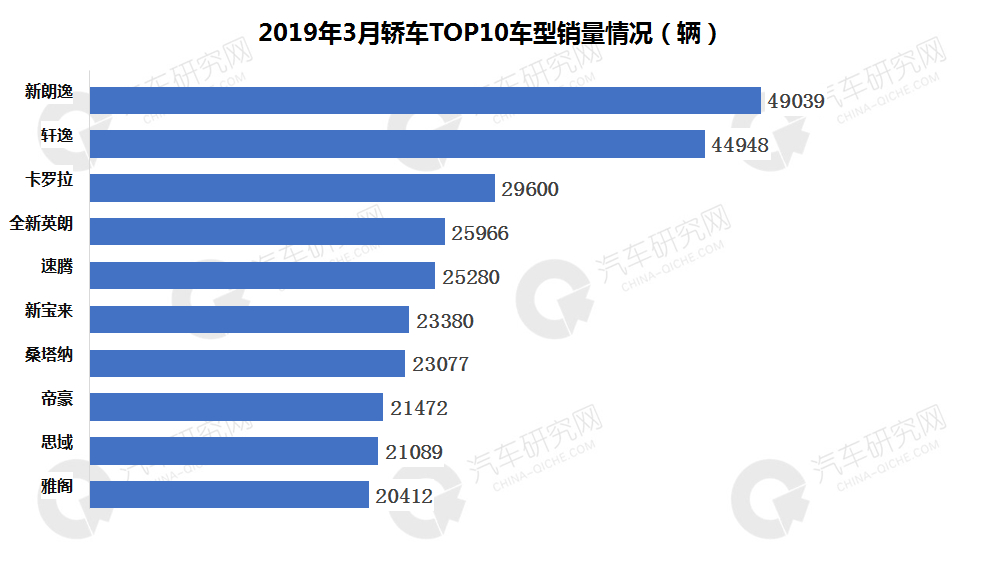 2019年3月轿车销量:朗逸轩逸形成双寡头 吉利帝豪继续