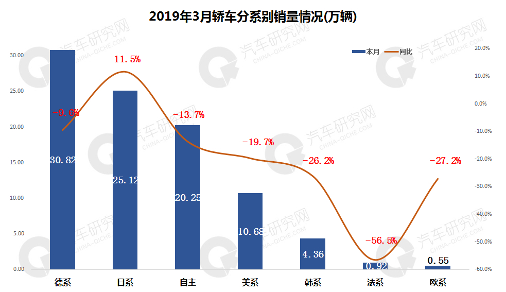 分系别来看,日系依旧是唯一一个实现正增长的系别,且连续六个月都呈正增长,法系本月下降最多,降幅超50%。