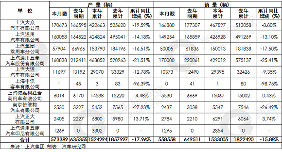 上汽集团11月销售车辆58.19万辆 累计同比下降13.33%