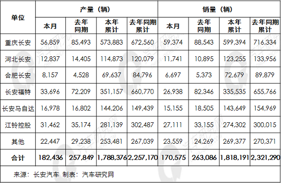 长安汽车发布10月份产销快报 累计产销量双双下滑