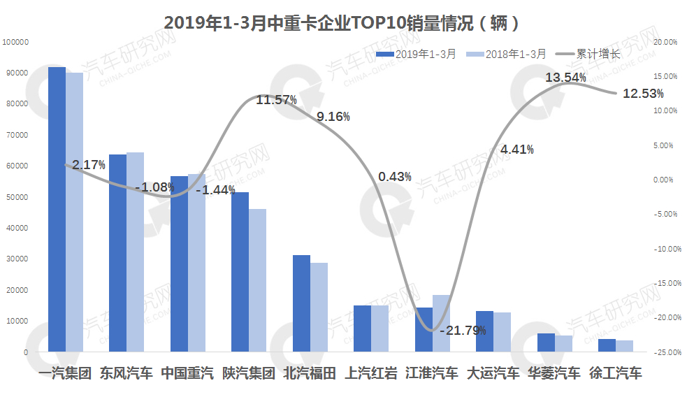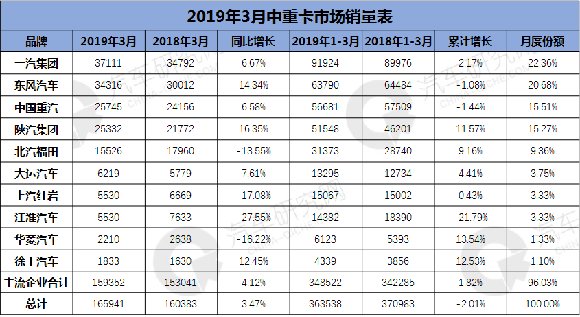 2019年3月中重卡销量:东风超重汽回归市场第二