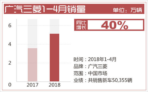 根据官方发布消息,广汽三菱1-4月全系销量达50,355辆,同比增长40%,其中4月份销量为11,967辆,同比增长20%,至此广汽三菱连续八个月月销量破万,保持稳定上涨趋势。