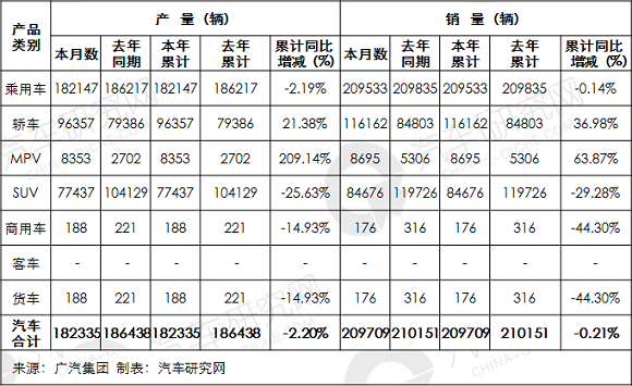 广汽集团2019年2月销量达102265辆 同比下滑11.0%