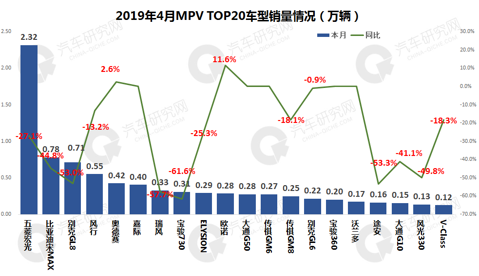 2019年4月MPV市场销量9.2万辆,同比下降31.5%,2019年1-4月MPV市场累计销售45.32万辆,同比下降25.1%。