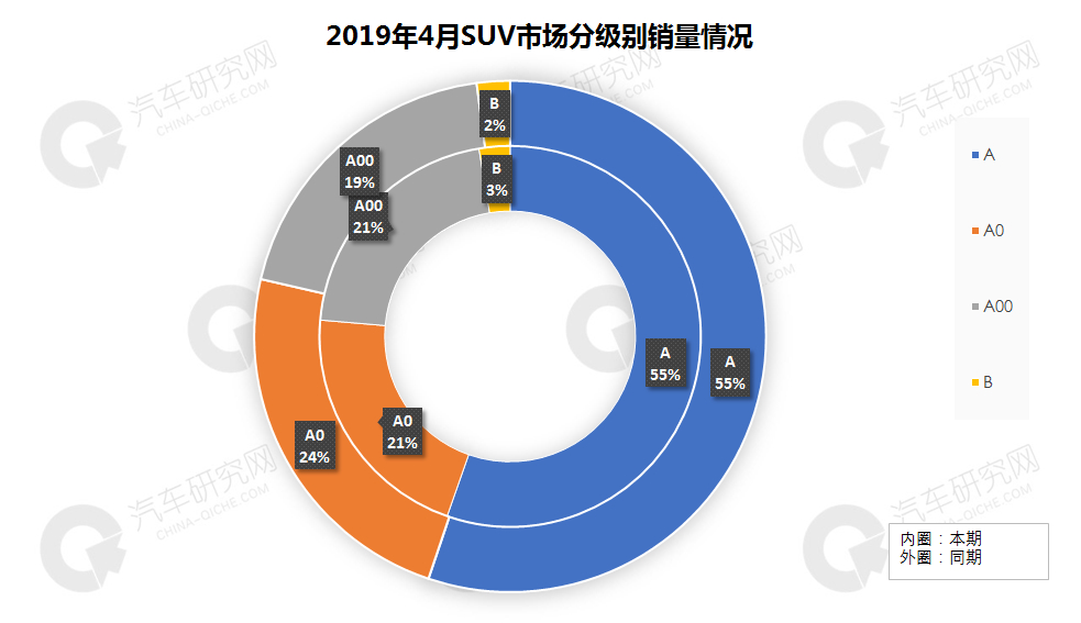 分级别来看,A级SUV占据半壁江山,A00级SUV份额增长3个百分点,挤压A0级3%的市场份额。