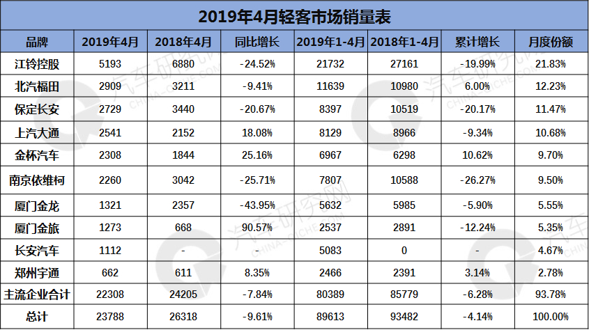 2019年4月轻客销量:江铃一家独大 保定长安首进前三