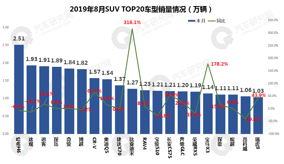 本月销量增长最大的是比亚迪宋,同比增长316.1%。销量下降较大的是昂科威,同比下降39.4%。
