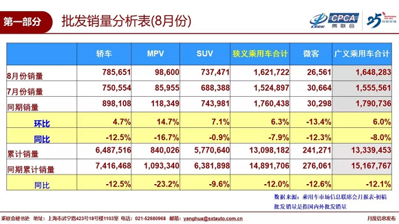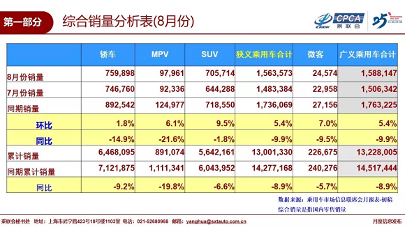 1、8月全国乘用车市场回顾
