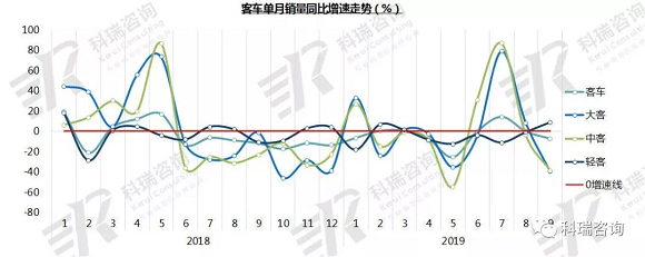 9月,大中客市场受新能源政策补贴影响呈现较大波动,降幅进一步扩大,年内市场压力较大。轻客市场受“金九银十”促销影响销量大幅提升,同比出现正增长。