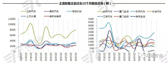 9月,轻客销量大幅提升,同比呈现正增长与大中客市场形成鲜明反差。由于新能源车型占比较小,轻客市场始终处于不温不火的状态,再加上低端大型MPV、大型微客、低端大型SUV和双、排半皮卡与微卡、短轴矩轻卡的间接逼迫,轻客销量下滑。宏观经济持续增速下行,很多制造业以及商贸物流企业经营业绩不是很好,也影响购买欲望。电商、互联网+等商贸流通行业的变革使车辆运输效率提升后,许多小企业对保有车辆的意愿也逐渐下降。因此,轻客市场近期一直较为低迷,9月的”金九银十”购车旺季,国内主流轻客品牌进行了发力影响,再加上JT/T489新标准实施对于9座客车的利好,带动9月销量大幅提升。