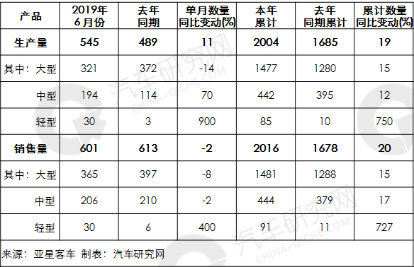 附:扬州亚星客车股份有限公司2019 年6月份产销数据快报