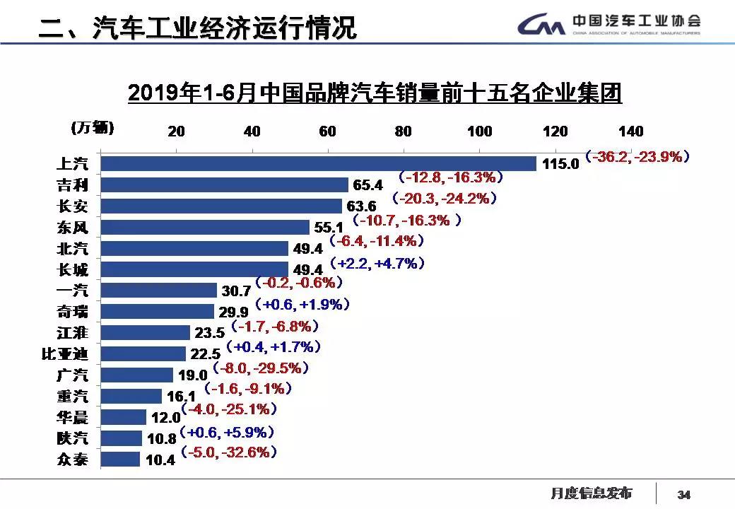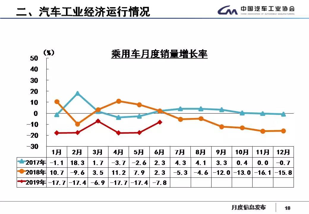 中汽协:6月份乘用车销量同比下滑7.80% 南北大众销量均超15万辆