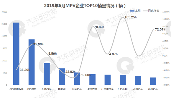 从MPV前十企业销量来看:上汽通用五菱仍独占鳌头,销量达2.56万辆,同比下降38.39%;上汽通用销量为1.87万辆排名第二,同比增长31.08%;其他企业销量均未过万辆。广汽本田增幅最高为105.25%,排名第八;比亚迪降幅最高为-43.92%,排名第四。