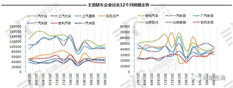 6月,TOP10轿车企业销量三升七降。上汽大众、吉利汽车降幅较大,均超30%;东风本田逆势增长73%。