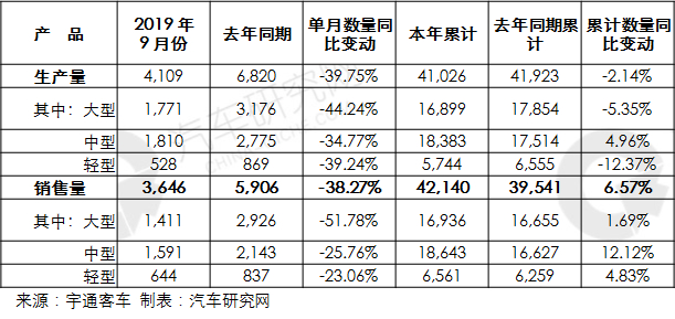 2019年9月客车市场销量分析