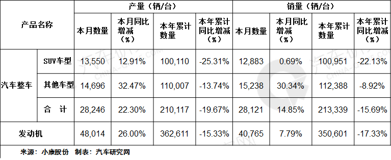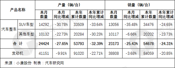 小康股份产销双降 同比分别下滑12.41%和15.01%