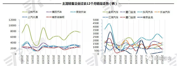 10月,大中客市场受新能源政策补贴退坡的波动影响开始减弱,大客市场有所回升。轻客市场受“金九银十”促销影响销量有所提升,同比保持正增长,但增幅开始收窄。