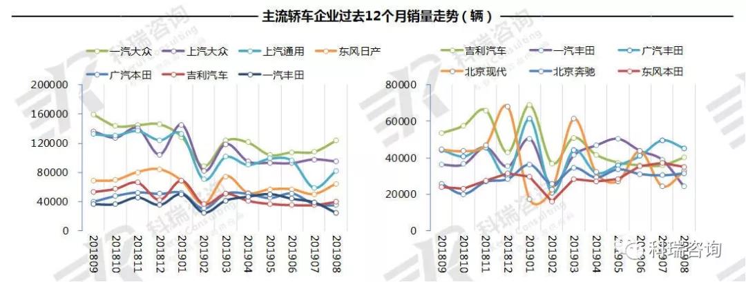 从8月销售数据来看,销量未达到200万辆,行业整体大幅下降的情况虽有所改变,但面临的压力仍没有有效缓解。8月进入车市产销回升期,环比开始呈现增长,但增幅并不明显,表明上半年国五车型促销透支影响还未完全消退。