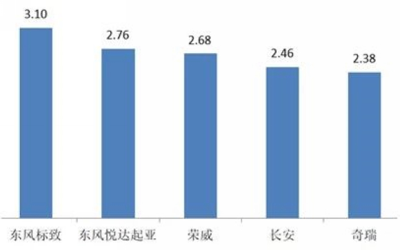 7月份,库存深度超过2个月的品牌有11个,最高的五个品牌为:东风标致、东风悦达起亚、荣威、长安、奇瑞。