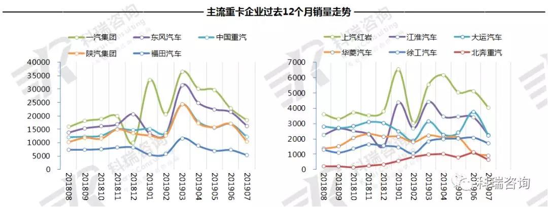 7月,卡车销售24.2万辆,同比下降8.9%;1-7月累计销售222.8万辆,同比下降4.4%。