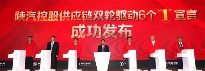 为更好推动供应链体系深化融合,进一步落实“双轮驱动”,助力千亿陕汽目标实现,大会向社会各界发布“陕汽控股供应链双轮驱动6个‘1’宣言”。即“1个命运共同体,1个协同采购平台,1个准入认证体系,1个绩效激励机制,1个物流服务标准,1个资源融合方案”,袁宏明与供应商代表潍柴动力股份有限公司副总裁冯刚、陕西法士特汽车传动集团有限责任公司总经理马旭耀、陕西汉德车桥有限公司总经理王占朝、康明斯全球轻型商用车业务总经理Terrence Taylor、陕西延长石油集团橡胶有限公司董事长吕利军、湖北恒隆企业集团副总裁王京来共同启动发布仪式。供应链体系将围绕 “2035战略”目标和“双轮驱动”,全面构建基于自身核心能力的强强联合、优势互补、利益共享合作关系,并对建立多方合作关系的供应商伙伴给予政策支持、流程简化等优惠和便利,共享发展红利,共创美好未来。