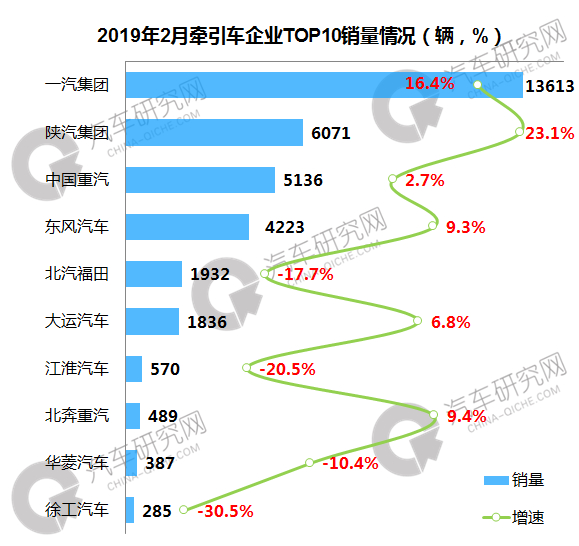 牵引车市场:前2月仅三家企业实现增长 一汽持续领跑