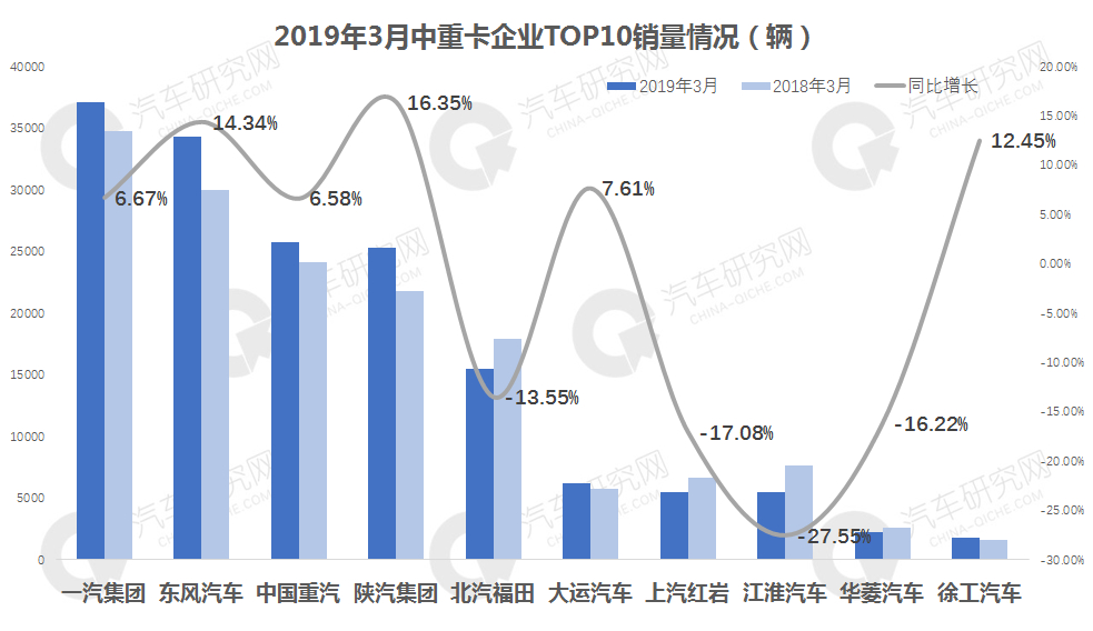 2019年3月中重卡销量:东风超重汽回归市场第二