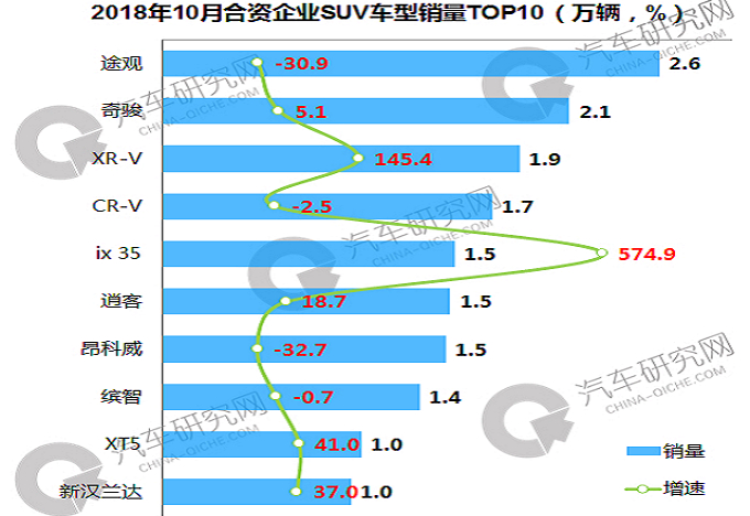 2018年途观排名合资SUV车型第一 现代IX35增幅超300%
