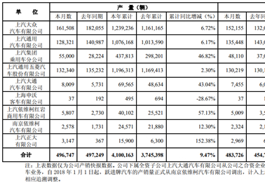 8月6日,上汽集团发布2018年7月产销快报。数据显示,上汽集团1-7月累计产量410.02万辆,同比增长9.47%,累计销量400.3744万辆,同比增长10.32%。 [详细]