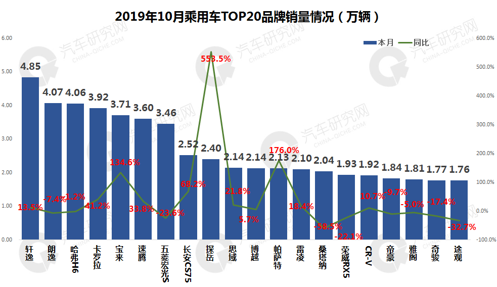 2019年10月乘用车市场销量分析