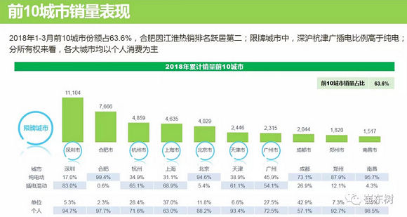 另外根据保监会交强险汽车销量数据,2018年1-3月销量城市中,深圳暂时超过上海、北京位居第一,而深圳和上海的新能源汽车销量主要由插混拉动。
