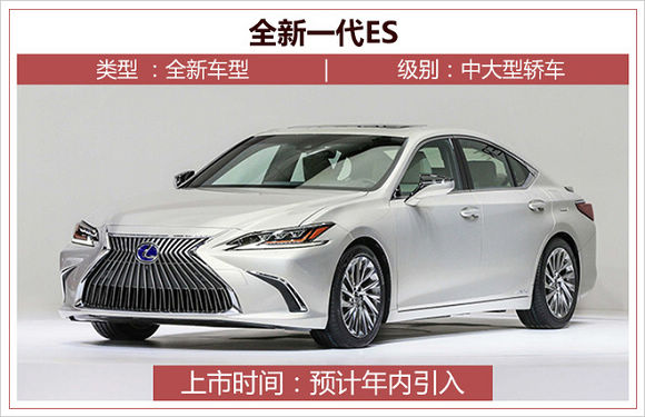 2018年6月2日全新一代ES在深港澳车展中再次亮相。新车也是ES系列的第7代车型,基于全新架构下的GA-K平台打造,官方表示其驾驶感受将得到明显的提升。动力方面,引入国内的车型预计将搭载全新的2.0、2.5升自然吸气发动机与2.5升阿特金森循环发动机和电动机组成的混合动力系统,实现动力与燃效的平衡。