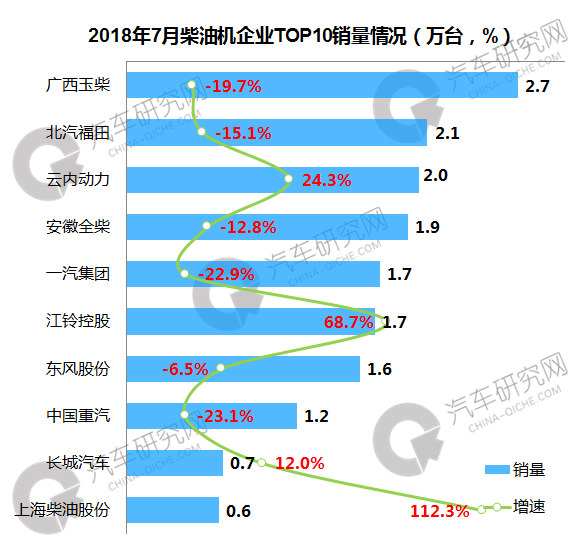 2018年柴油机企业:多数企业销量下滑明显 长城逆势增