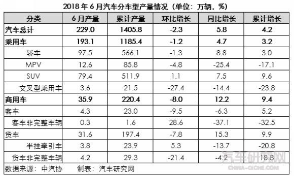 6月,汽车产销比上年同期继续呈现增长,总体表现平稳。当月汽车产销分别完成229万辆和227.4万辆,产销量比上月分别下降2.3%和0.6%,比上年同期分别增长5.8%和4.8%,高于上年同期增速。